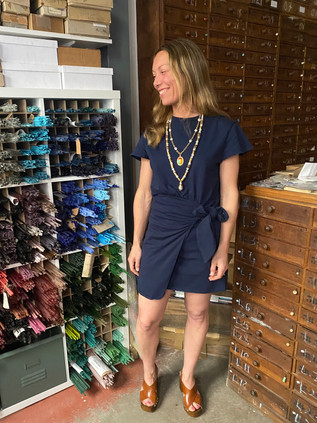 Caroline porte notre Tee Shirt Tiago, et une de ses créations pour la Maison Rousselet